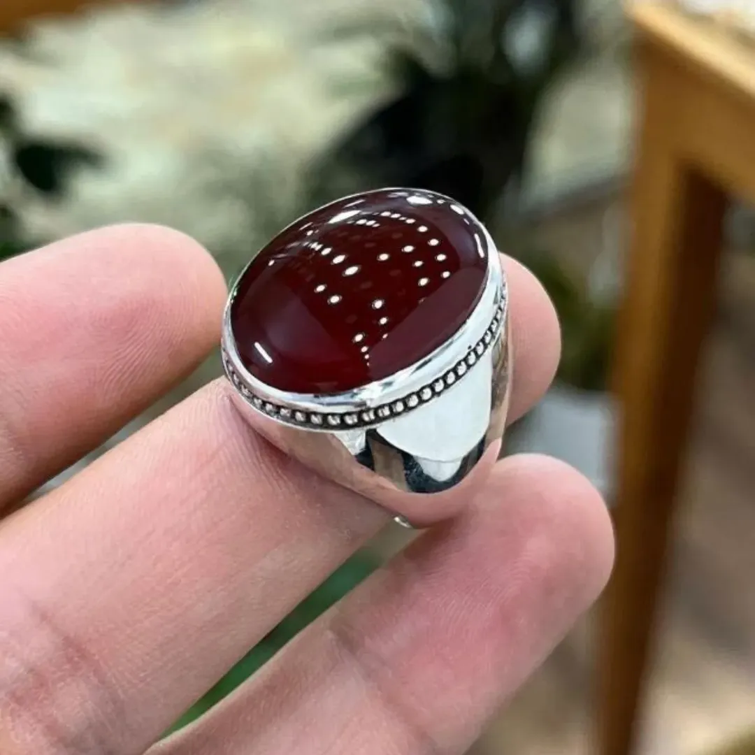 انگشتر نقره مردانه مزین به سنگ عقیق.