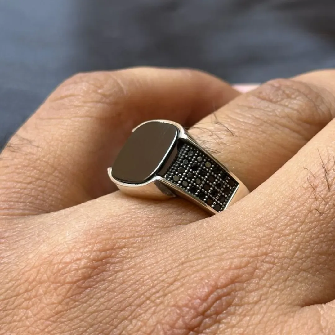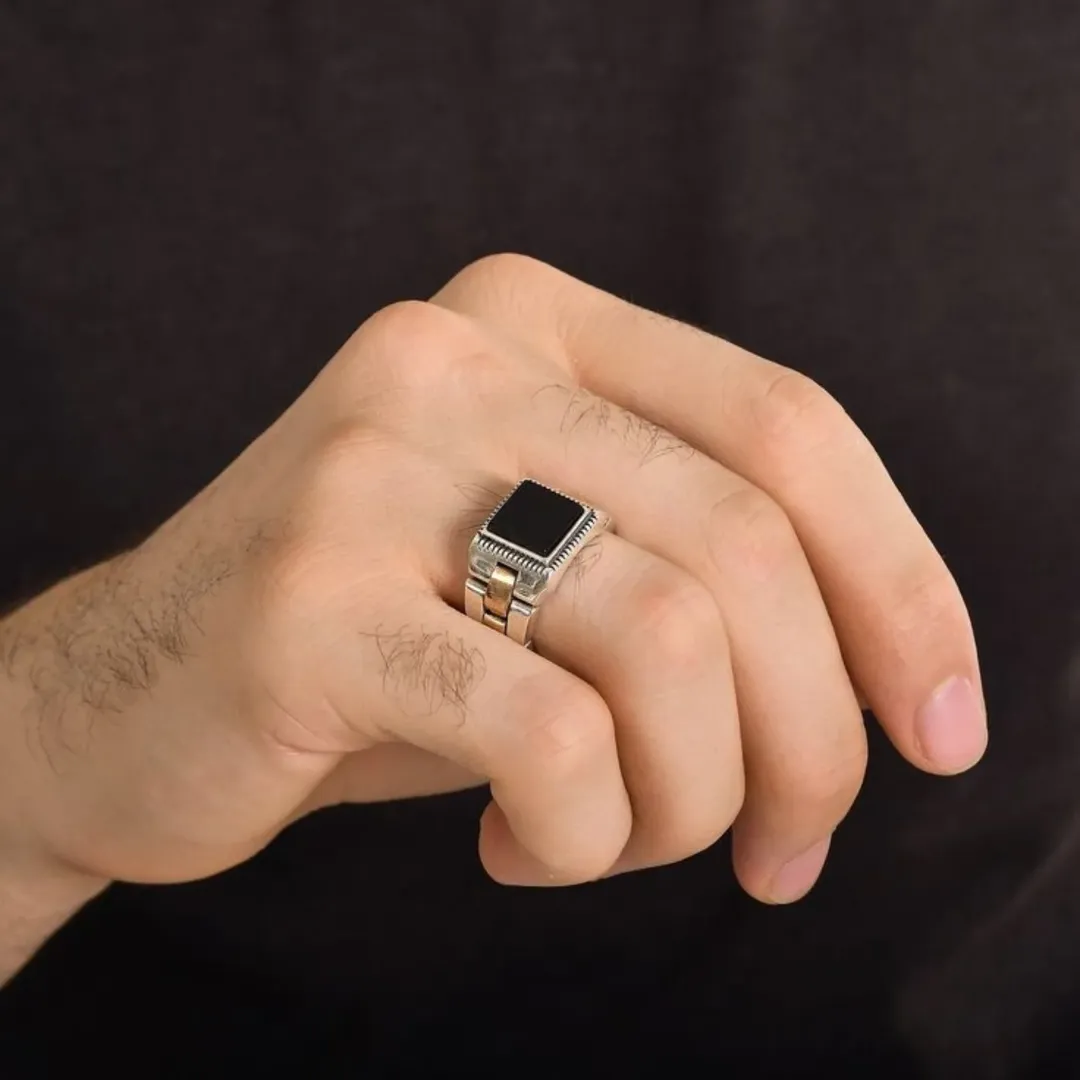 انگشتر نقره مردانه مزین به سنگ ابسیدین.