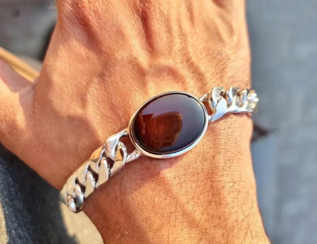دستبند نقره مردانه کارتیر مزین به سنگ عقیق