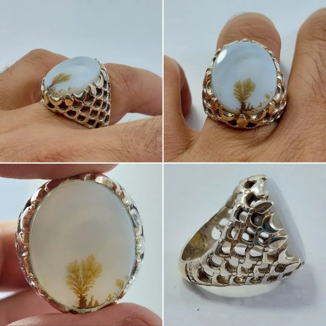 انگشتر نقره مردانه مزین به سنگ عقیق شجر