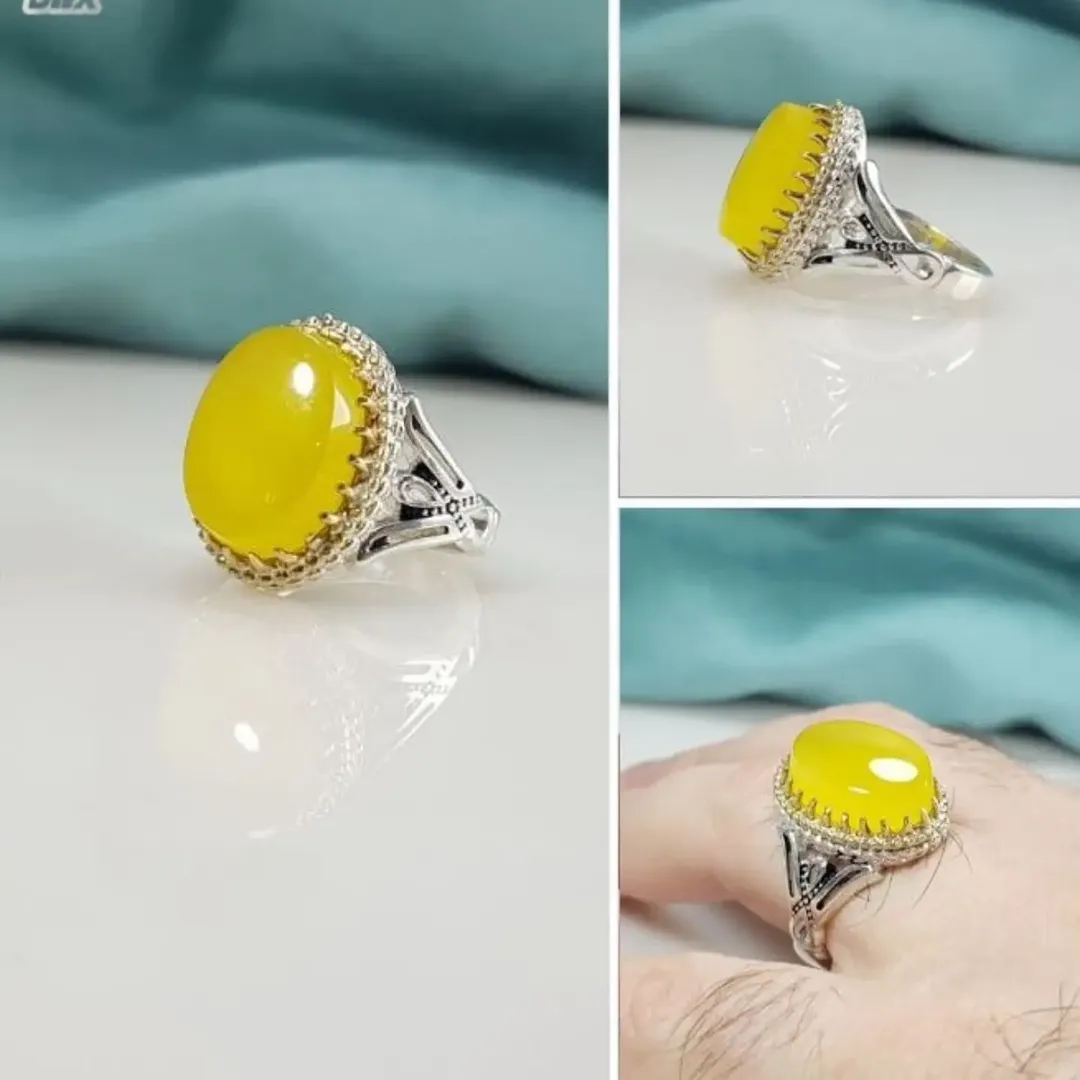 انگشتر نقره مردانه مزین به سنگ شرف الشمس.