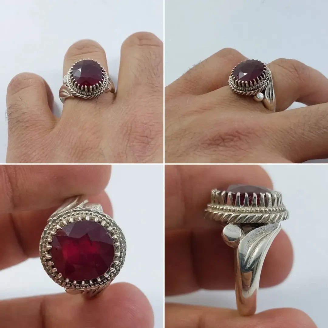 انگشتر نقره مردانه مزین به سنگ یاقوت سرخ آفریقایی