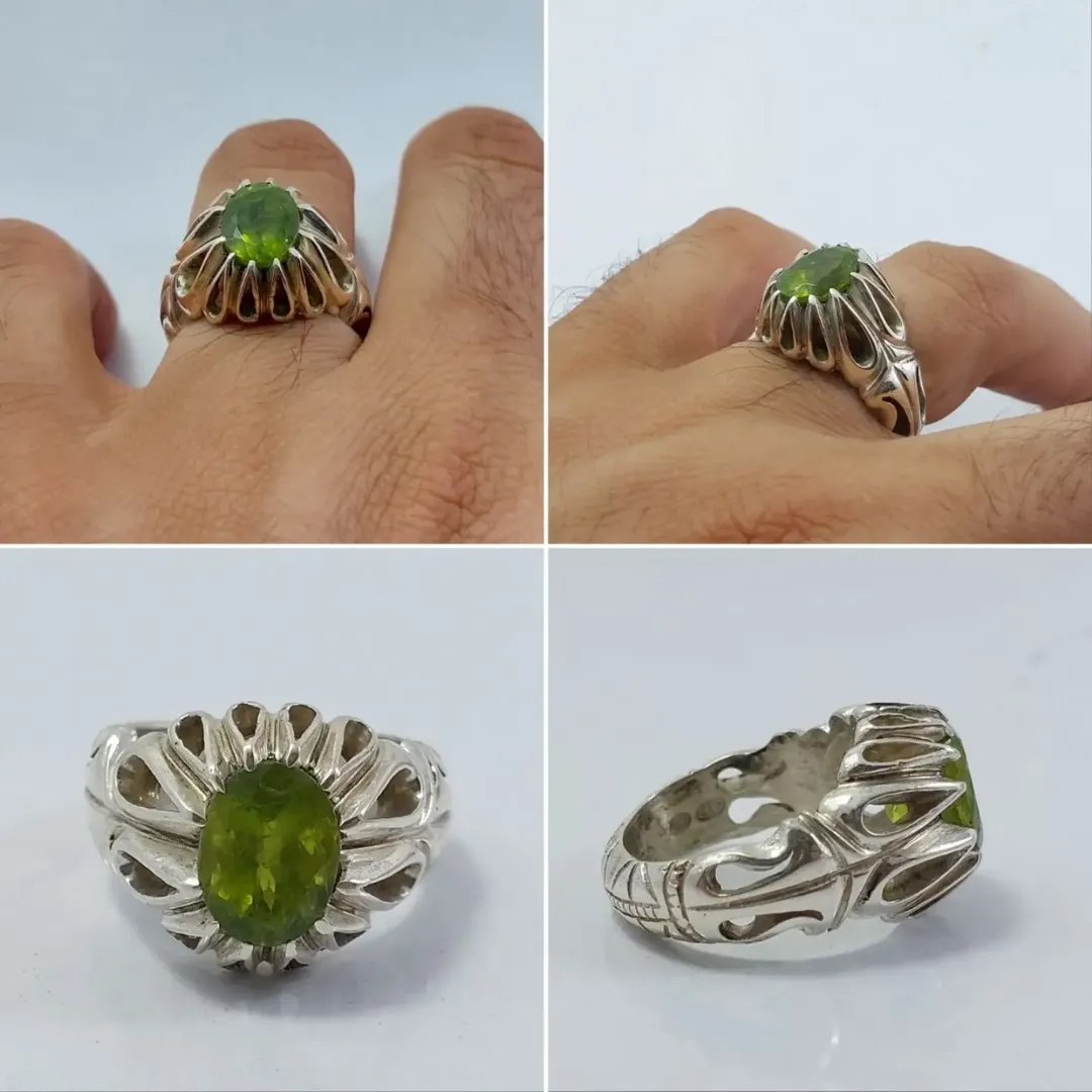 انگشتر نقره مردانه مزین به سنگ زبرجد