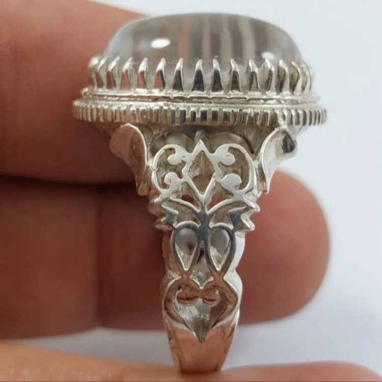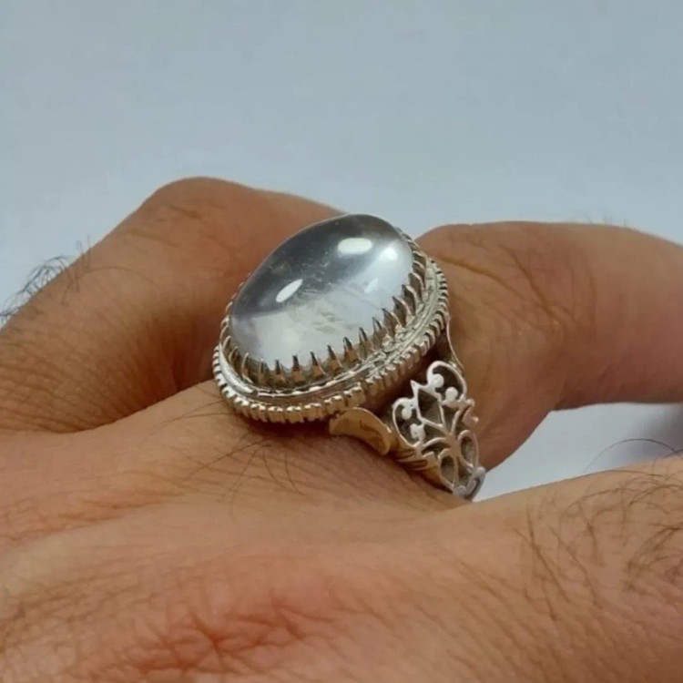 انگشتر نقره مردانه مزین به سنگ دُرّ نجف