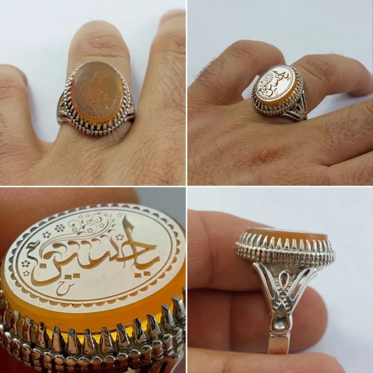 سنگ کاملا طبیعی و معدنی با حکاکی استادانه استاد رحیم عیار نقره 925 همراه با فاکتور رسمی ، گارانتی اصالت کالا و جعبه شیک وزن 12/5 گرم