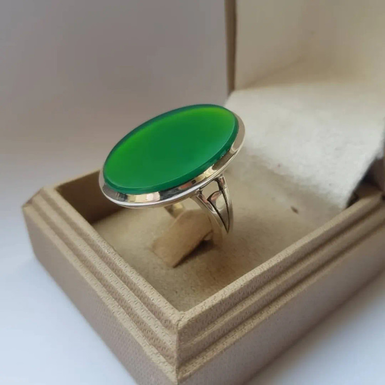 انگشتر مردانه نقره 925 مزین به سنگ عقیق سبز