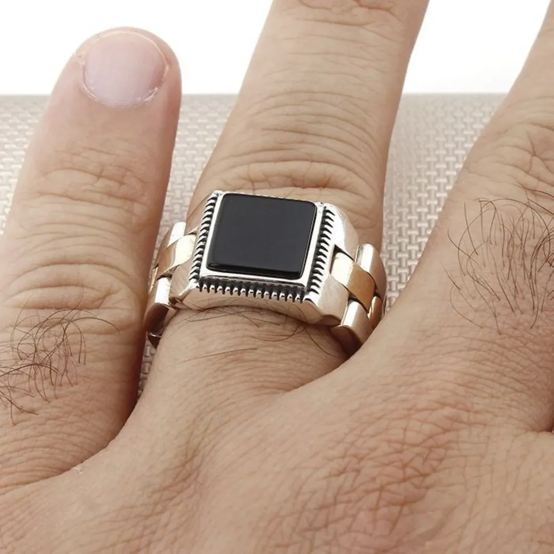انگشتر رولکس متحرک مزین به سنگ ابسیدین