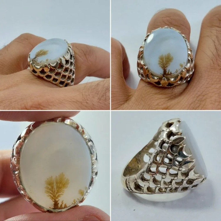 انگشتر نقره مردانه مزین به سنگ شجر قائن تک درخت سنگ کاملا طبیعی و معدنی عیار نقره : 925 همراه با فاکتور رسمی و جعبه شیک وزن : 14/5 گرم